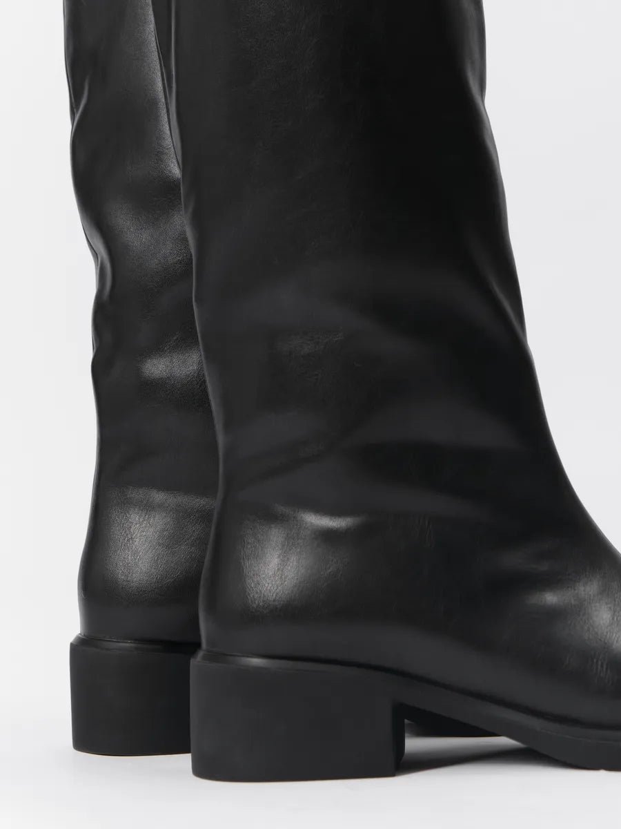 Winter Knee-High Boots for Women, Low Heel, Sleek Faux Leather, Warm Synthetic Fur Lining